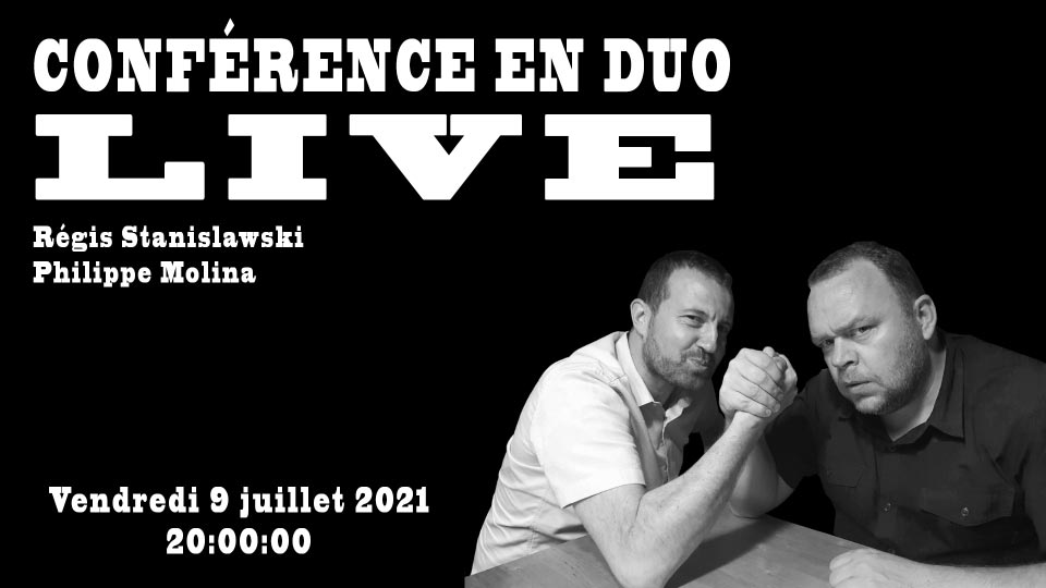 Chaque vendredi, Philippe Molina & Régis Stanislawski vous partage sur youtube une vidéo d'un tour de magie, de leur cru, ou revisité d'un grand auteur. Le 9 juillet 2021, ils ont fait une conférence sur ZOOM pour expliquer 25 de ces tours. Voici le replay !