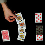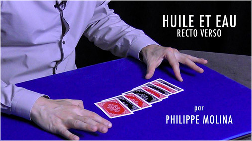 Une routine d'huile et eau innovante avec 4 carte rouges à dos rouges et 4 cartes noires à dos noires, qui bluffera même les magiciens.